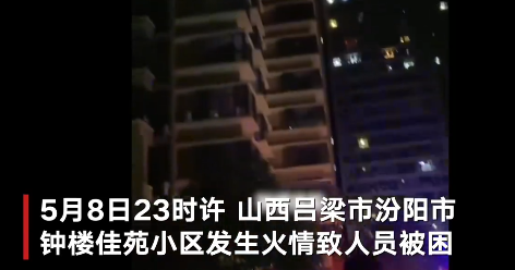 5月8日23時(shí)許,山西省呂梁市汾陽(yáng)市鐘樓佳苑小區(qū)發(fā)生火情,初步判斷為四樓管道井電表箱著火。